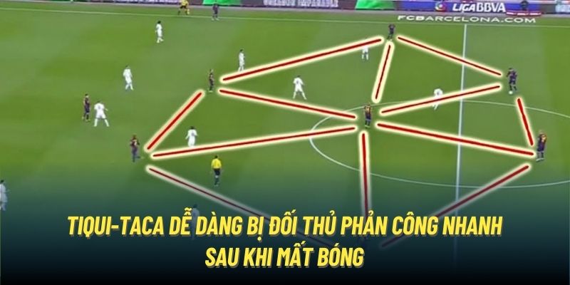 Ngay từ khi Johan Cruyff cho ra mắt thứ Bóng đá tổng lực thì đã có những lần ông thua đau đớn, Tiki Taka cũng không phải trường hợp ngoại lệ. Bởi khi cần đến 7-8 cầu thủ tràn sang phần sân đối phương để tấn công, nhân sự phòng ngự sẽ thiếu đi rất nhiều. Do đó, chỉ cần một lần chuyền sai địa chỉ, họ sẽ bị vỗ mặt liên tiếp bởi đối thủ.